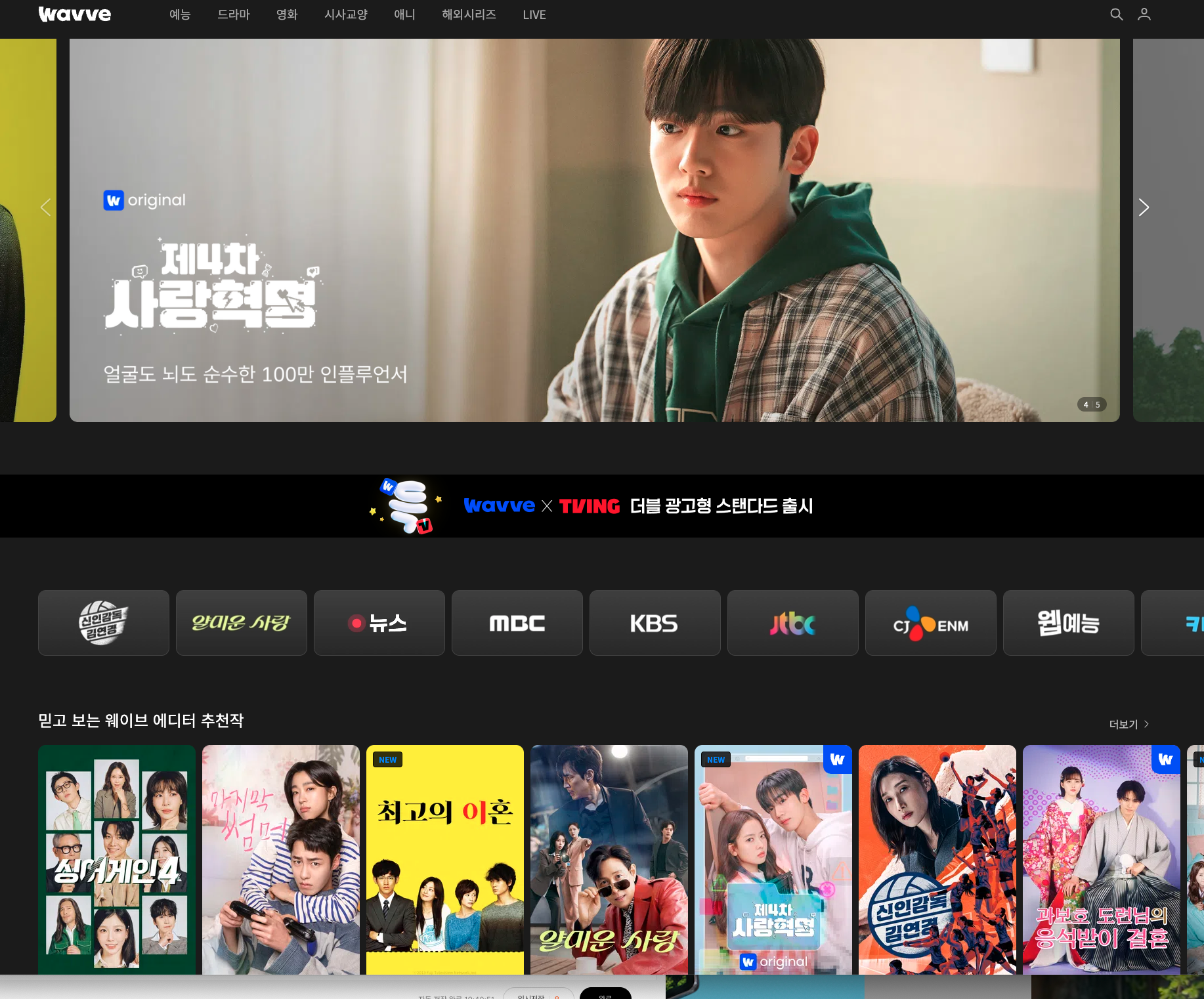 5️⃣ 웨이브(Wavve) — 2025년 요금제 & 특징
